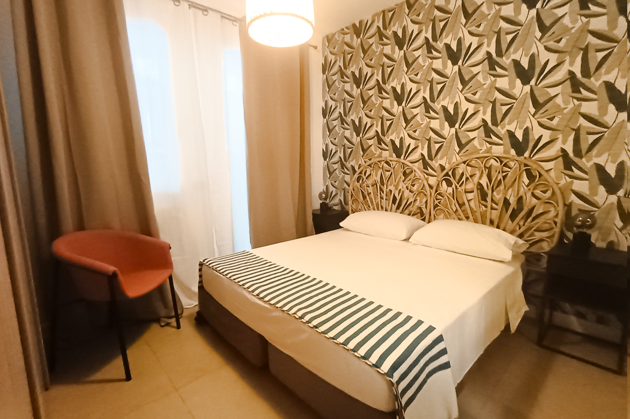 2 camere matrimoniali - 1 bagno - soggiorno - cucina - piscina privata e solarium .